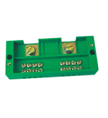 材料采用聚碳酸酯阻燃, 导电构件采用条铜块分线孔双螺钉压接技术,保证连接导线可靠,额定交流电压500V,分户连接截面 4~10mm2 ,总线截面10~50mm2 ,适用于住宅使用的电表箱分线连接,也适用小型单相计量的经营生产场所的开关板的表箱连接。